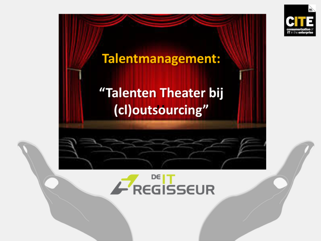 Alles in het theater staat in het teken van dat ultieme moment…het applaus dat men ontvang na een succesvolle voorstelling. Helaas is in de praktijk de afstand tussen business en ICT erg groot is geworden. Met Cloutsourcing wordt deze alleen maar groter. Kies daarom bewust welke competenties je wel of niet wil outsourcen. Het belangrijkste is de ‘taal’ van het gebruiker te blijven spreken en de business en gebruiker tevredenheid als primaire doelstelling te hanteren.