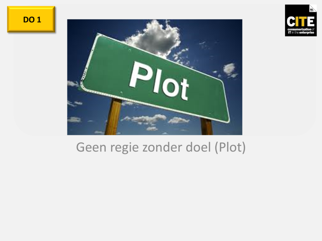 Bij het maken van een toneelstuk heeft een regisseur een duidelijk doel voor ogen. Hij wil met het toneelstuk iets bereiken, iets oproepen bij mensen en een boodschap overbrengen. Een regisseur kan niet zonder een doel – een plot. Een doel geeft richting en bepaalt keuzes die gemaakt moeten worden. Het eerste inzicht is dat een regisseur die overtuigd is van zijn doel, zal als leider zijn spelers daarvan ook weten te overtuigen.